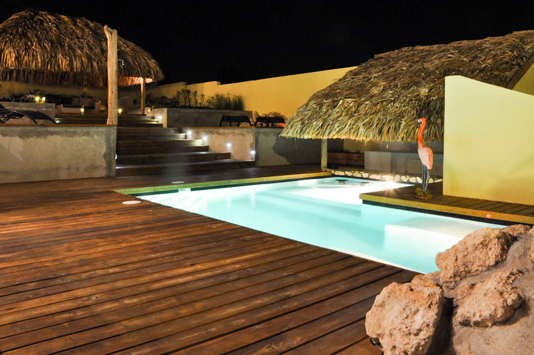 U kunt een heerlijke frisse duik nemen in het prachtige zwembad met poolbar en ligbedden in het zwembad.