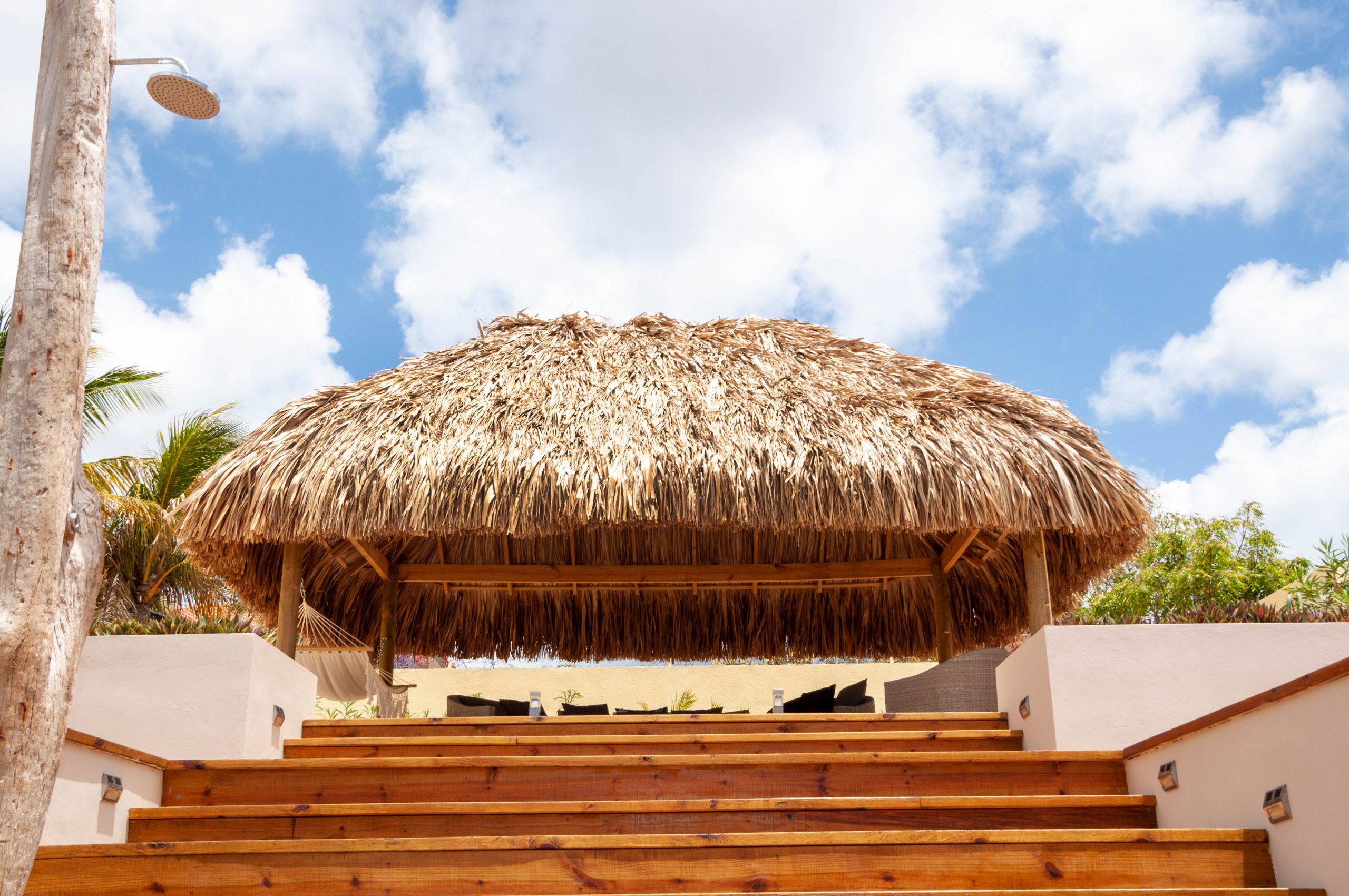 De tuin is voorzien van een comfortabele palapa van 24 m2 vanwaar u uitzicht heeft op de zee. Tevens zijn er twee zonneterrassen met ligbedden.